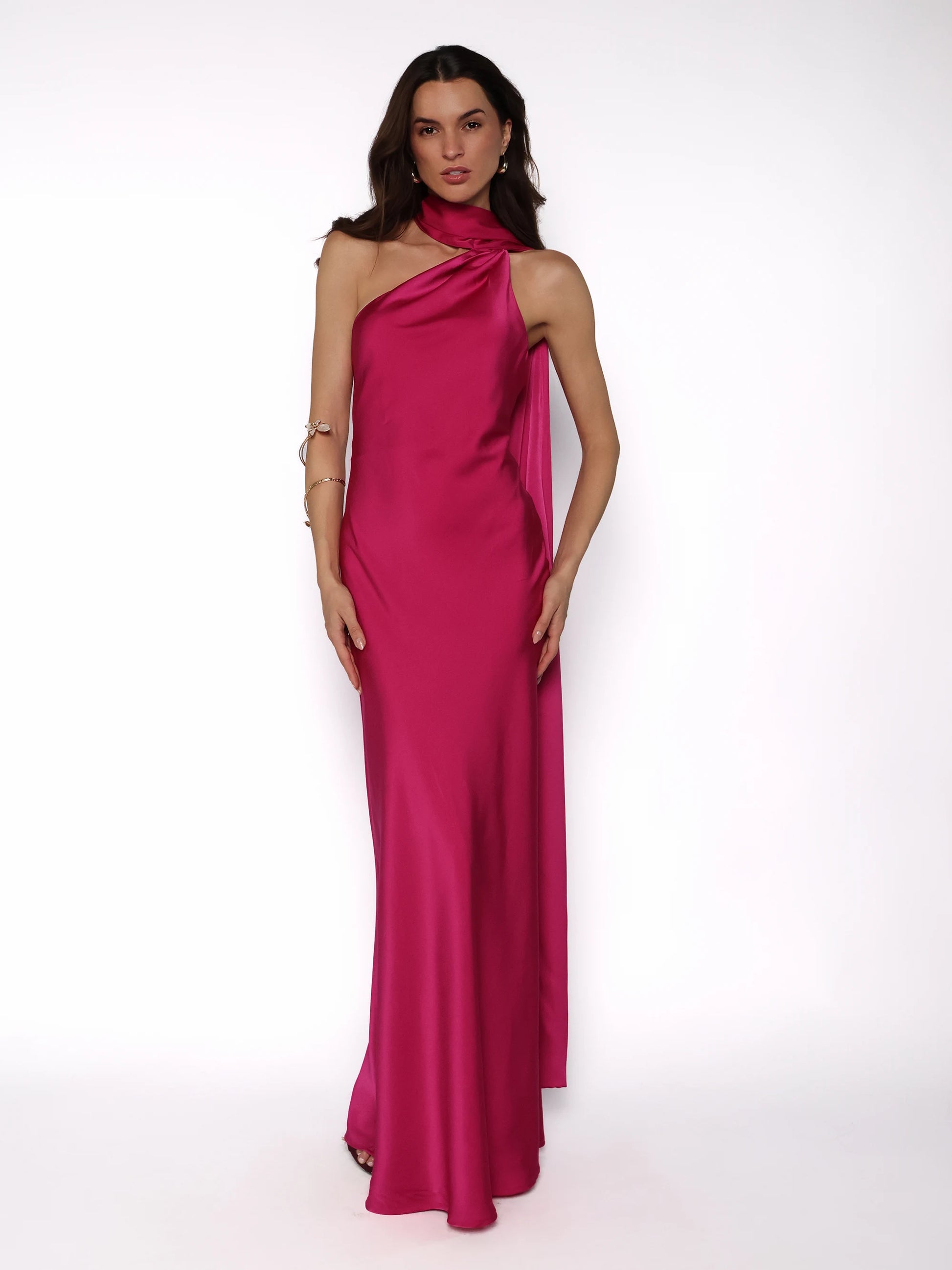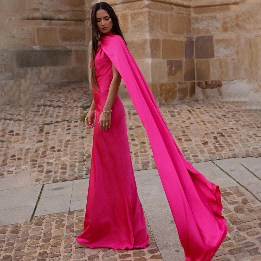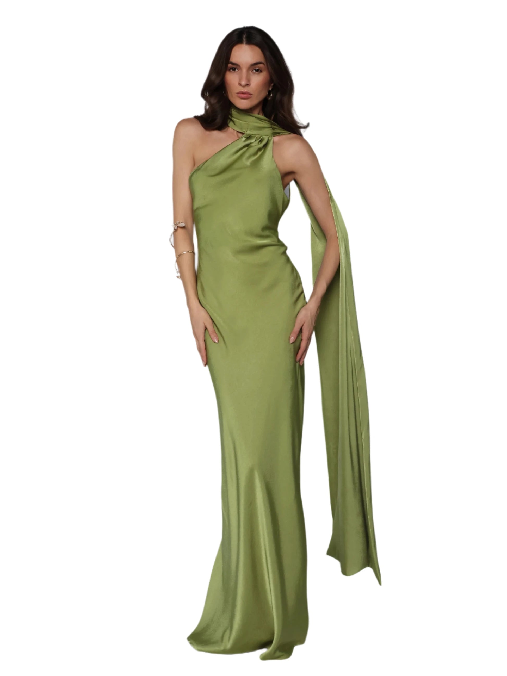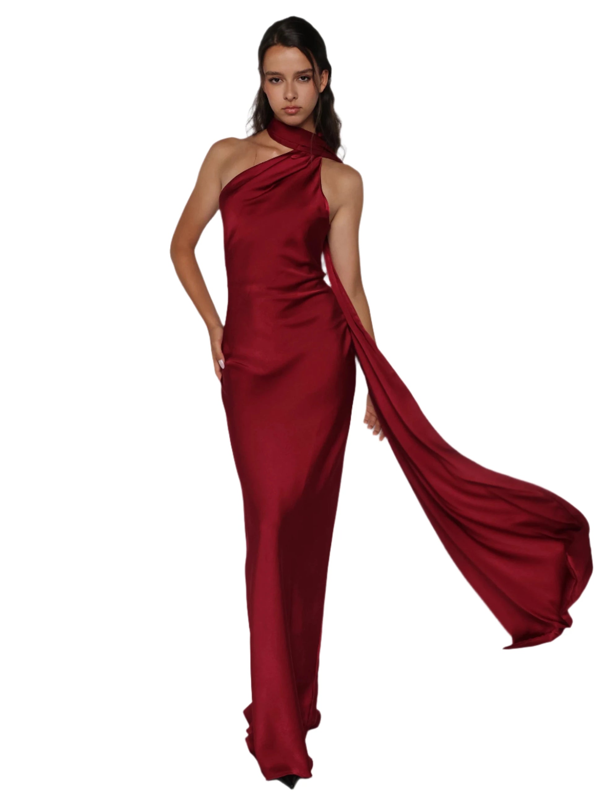 Aceasta rochie lunga, cu croi fluid si textura satinata, este piesa care transforma orice aparitie intr-o declaratie de rafinament. Cu un design pe un umar si esarfa lunga care cade lejer la spate, modelul Alma evidentiaza linia gatului si a spatelui, oferind un aer sofisticat si elegant. Perfecta pentru evenimente speciale, cine romantice sau momente in care vrei sa te simti ca o zeita moderna. Alege culoarea care iti reflecta starea de spirit si fa un catwalk cu incredere spre centrul atentiei tuturor.