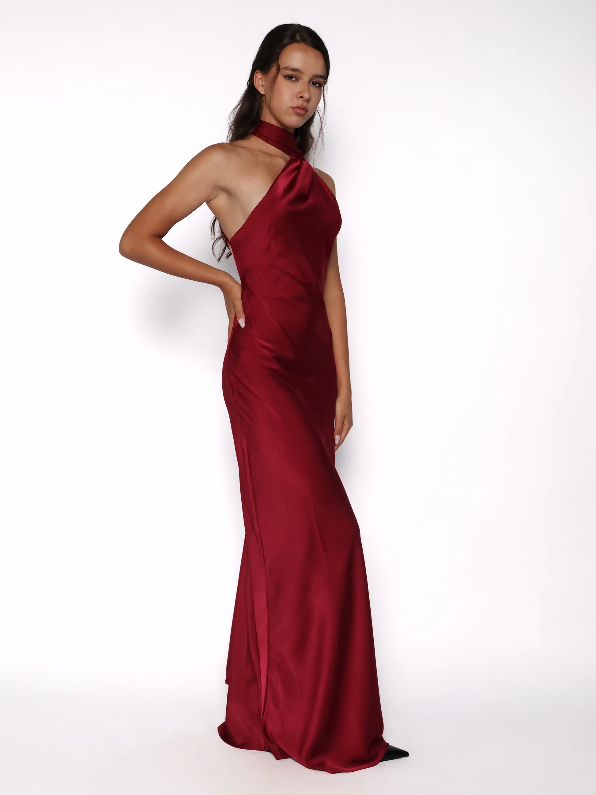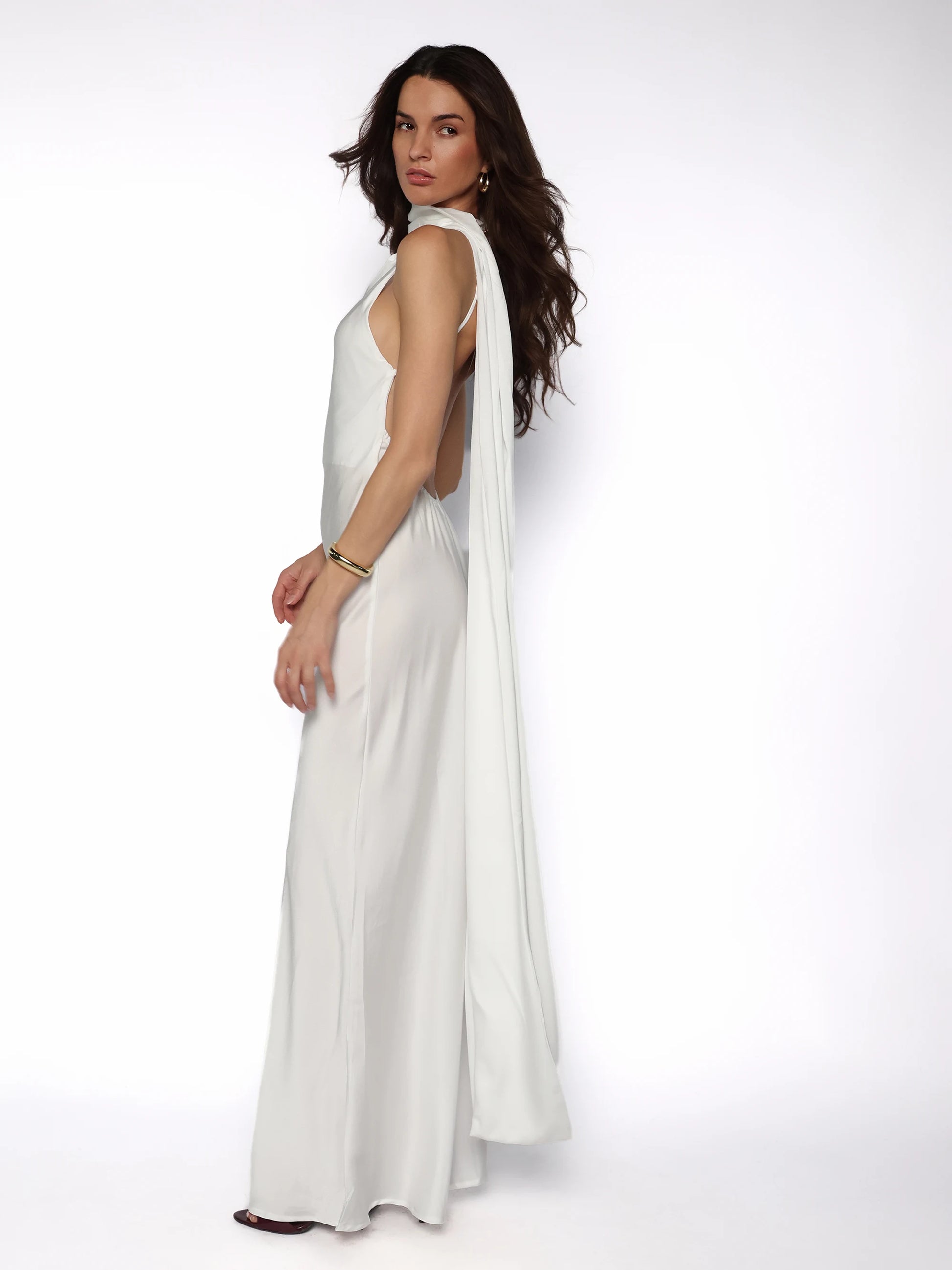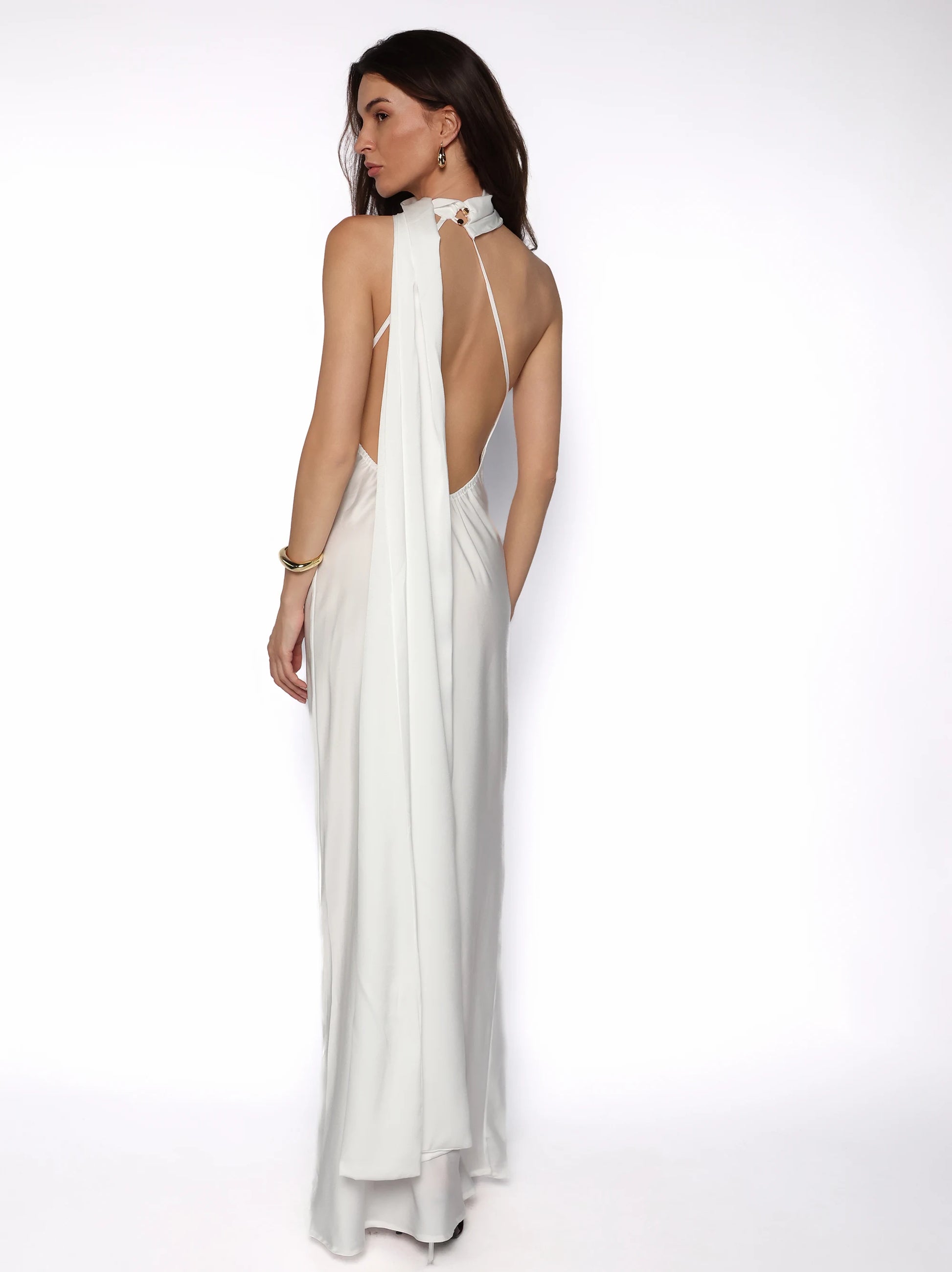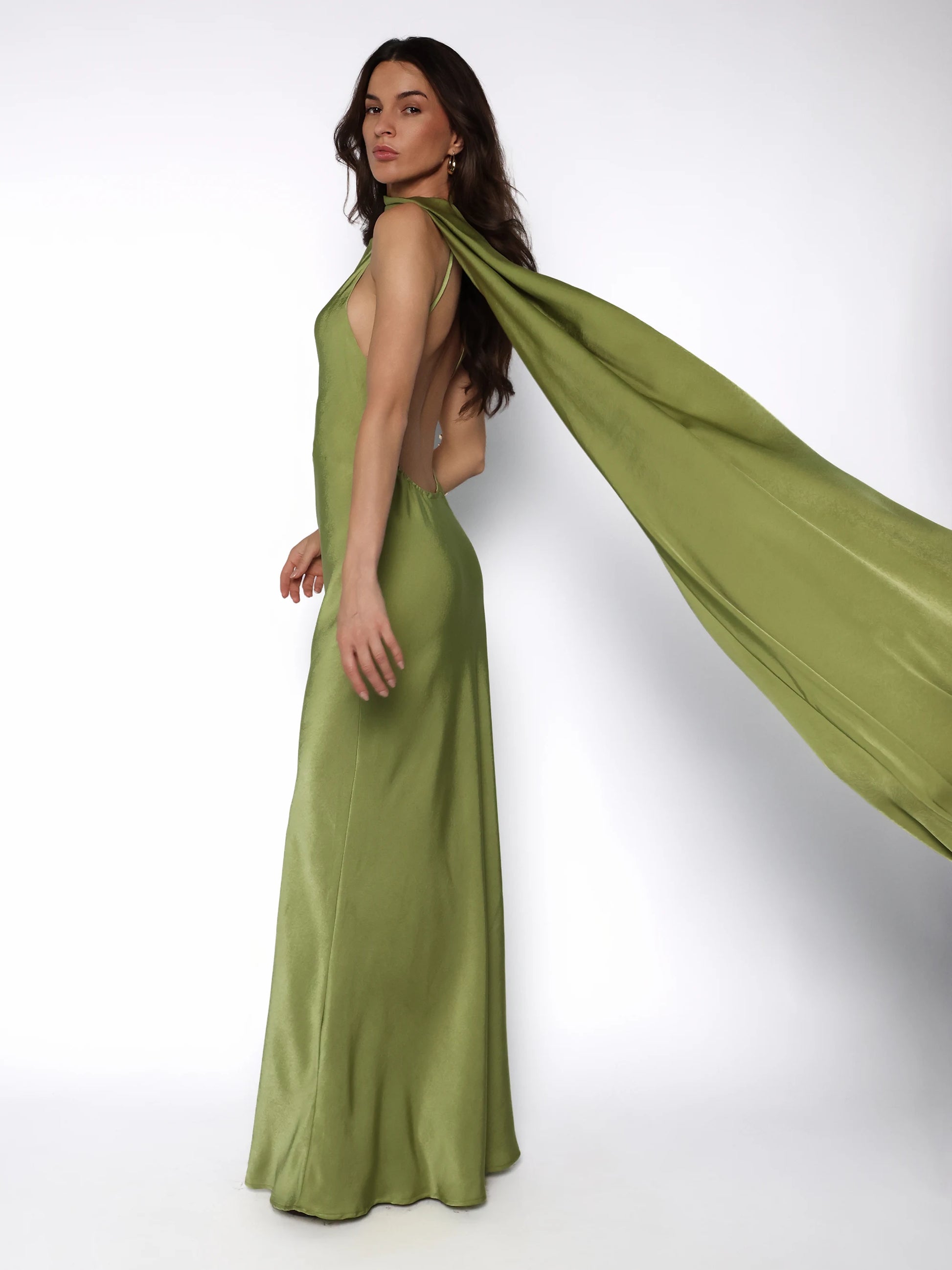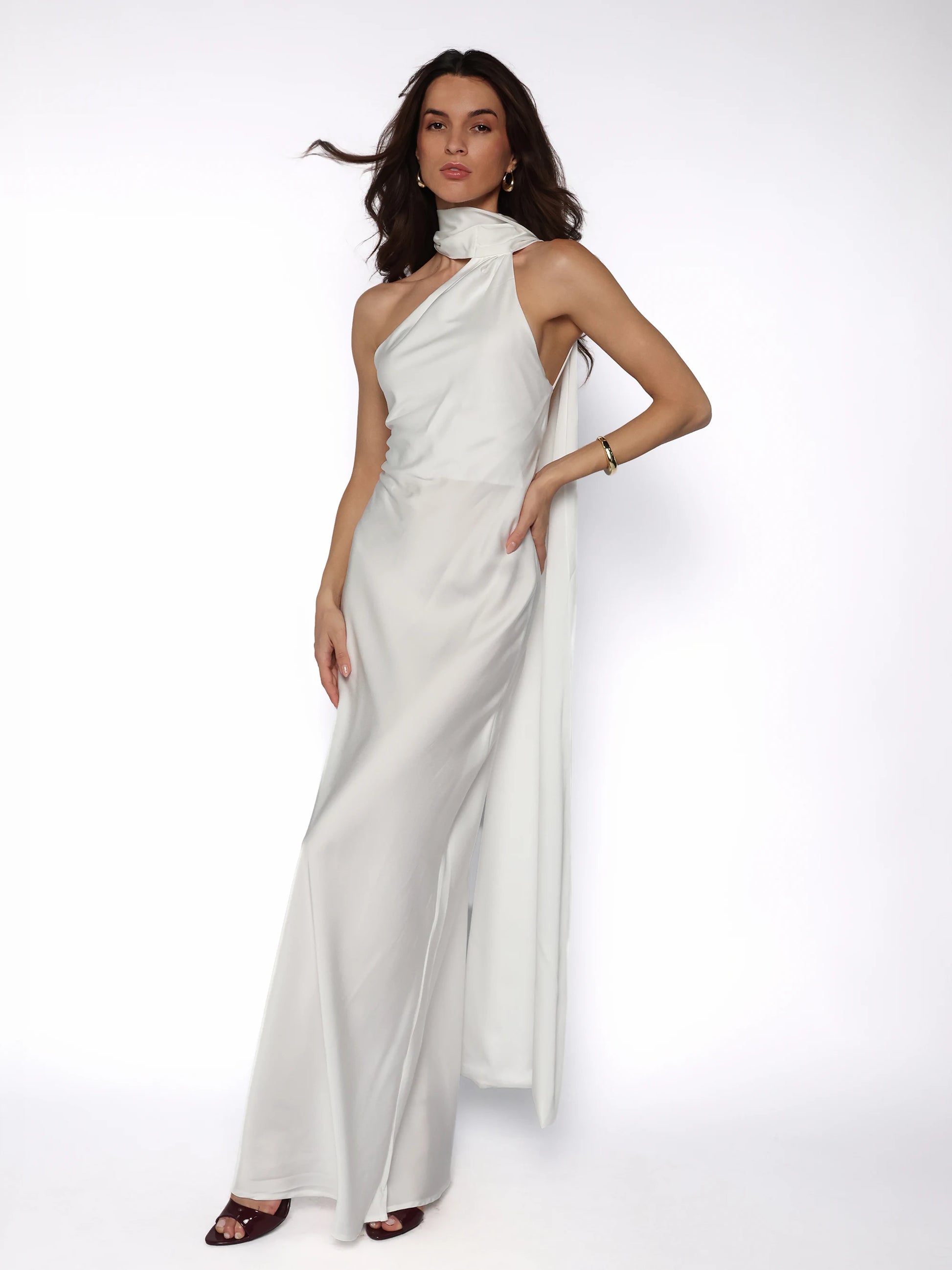Rochie lunga satinata cu detaliu tip esarfa fluida, Alma
