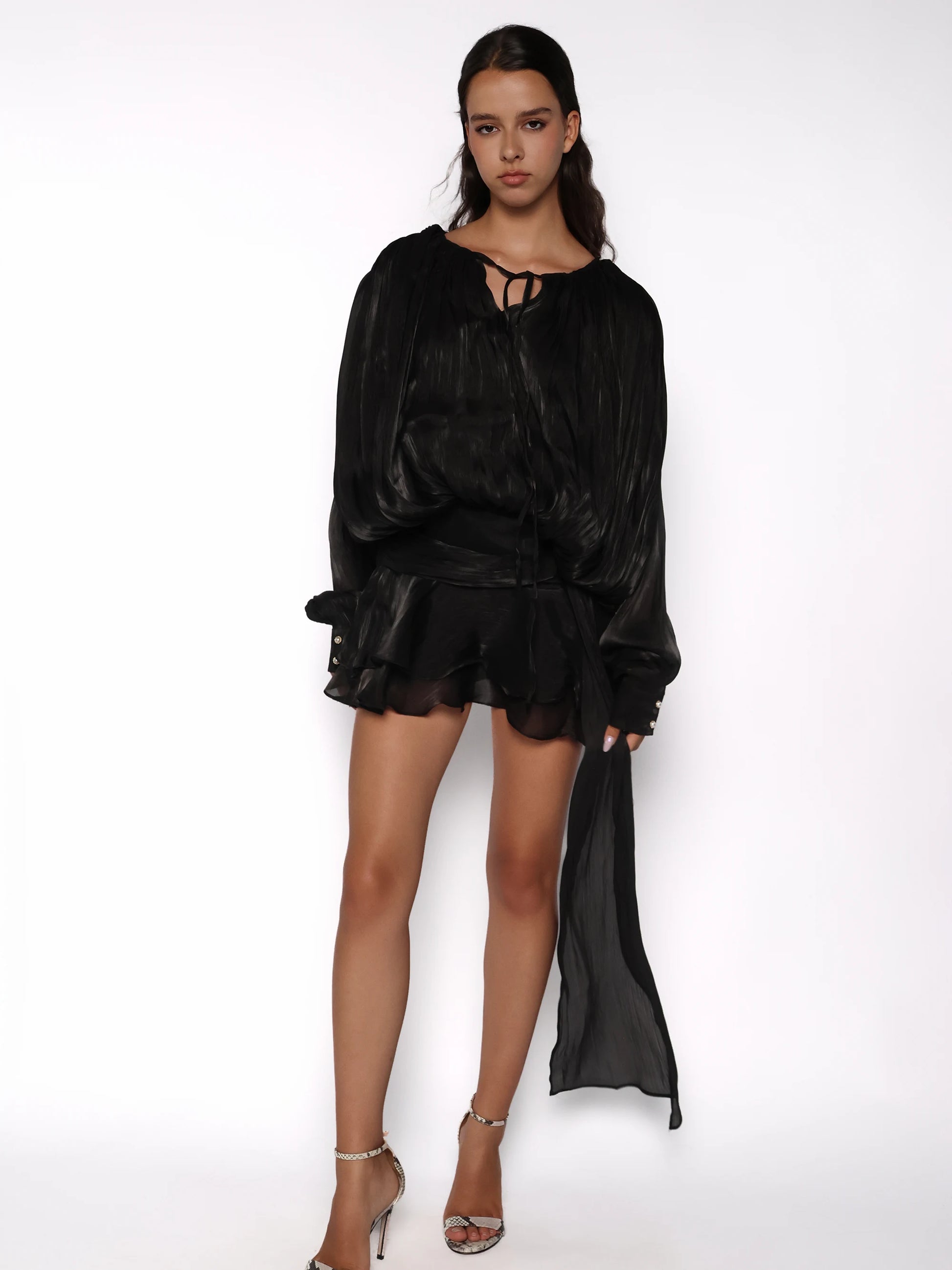 Plina de viata, sexy si increzatoare! Mereu o aparitie de neuitat! Cu un volum spectaculos, texturi fluide si cordonul care iti contureaza o silueta misterioasa si eleganta, rochia vine la set cu o pereche de pantalonii scurti din acelasi material, satin delicat, care iti ofera siguranta ca oricat de scurta este rochia, nu lasa sa se vada nimic din ce nu vrei sa se vada. Pantalonii ii poti purta si in alte combinatii. Fie ca mergi la o petrecere, intr-o vacanta romantica sau iesi la un rooftop cocktail, Ana te face sa te simti ca o aparitie.